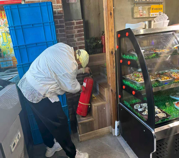 社區(qū)通過商鋪微信群轉(zhuǎn)發(fā)商務(wù)藍(lán)碼、燃?xì)獍踩嘤?xùn)視頻,上門走訪檢查等方式,向轄區(qū)商戶普及安全生產(chǎn)重要性,明確燃?xì)狻⑷加?、電器使用?guī)范及自查重點(diǎn),引導(dǎo)商戶主動排查隱患。行動中,社區(qū)按照網(wǎng)格分片對轄區(qū)所有商鋪進(jìn)行走訪排查,重點(diǎn)核查是否有滅火器、是否過期、安全通道是否堵塞等安全檢查。?