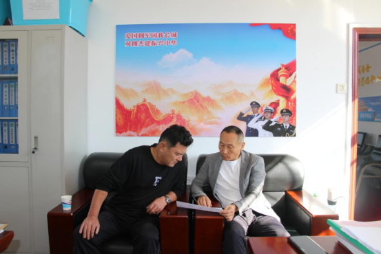 圖2:服務(wù)站專干諶華同志(左)審核殘疾軍人(右)提交的票據(jù)