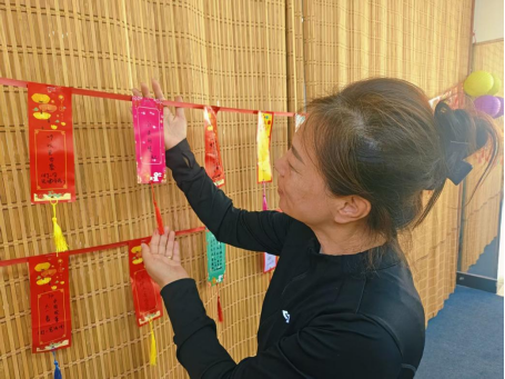 活動室內(nèi)懸掛了各種妙趣橫生、老少皆宜的謎語,來參加的社區(qū)居民們結(jié)伴猜謎語,與身旁的朋友“竊竊私語”,或獨自苦思冥想,內(nèi)容豐富的謎語吸引了大家,燈謎內(nèi)容包括了中秋節(jié)、國慶節(jié)的歷史和垃圾分類知識等,謎面有趣且通俗。大家你一條我一條踴躍競猜,猜出謎底的居民即可領(lǐng)取精美禮品,現(xiàn)場洋溢著歡樂的氛圍。
