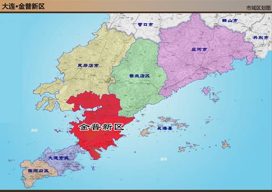 金普新區(qū)位于大連市中南部,區(qū)域范圍包括金州區(qū)全部行政區(qū)域和普蘭店區(qū)四個街道,陸域總面積2299平方公里(實際管轄1949平方公里)。