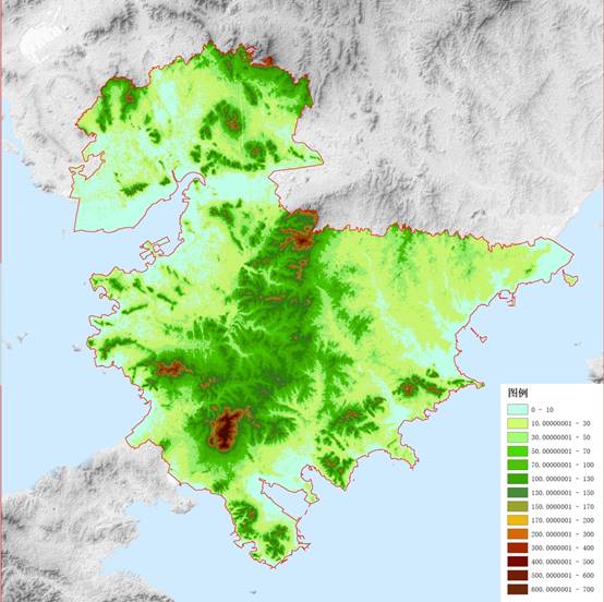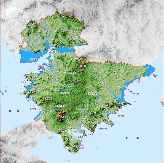 金普新區(qū)南至大孤山,北至裴山,西至蕎麥山,東至杏樹外海黑島,整體呈現(xiàn)出中部高、東西低的趨勢。地勢相對平坦區(qū)集中在小黑山以東、窟窿山以北區(qū)域。南部較高山體大黑山海拔高度約為650m;中部較高山體小黑山海拔高度約為410m;北部較高山體裴山海拔高度約為350m