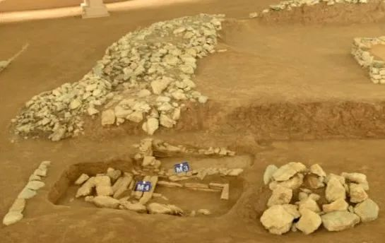“牛河梁遺址位于遼寧朝陽,屬于西遼河流域的紅山文化,距今約5800—5000年。遺址中有祭壇、女神廟和埋葬著貴族的積石冢,反映了紅山文化晚期的社會分化和祭祀禮儀?!?br>